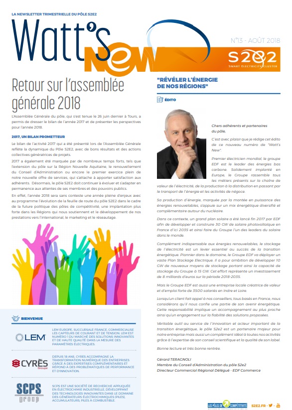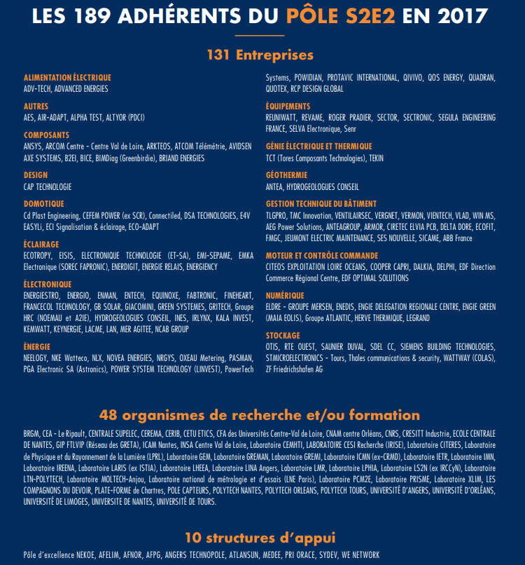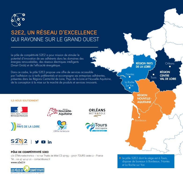 Acteur économique de référence sur les thématiques de l’énergie électrique, le pôle S2E2 rassemble et accompagne près de 200 acteurs économiques (entreprises et établissements de recherche), répartis dans les régions Centre-Val de-Loire, Pays-de-la-Loire et Nouvelle-Aquitaine.